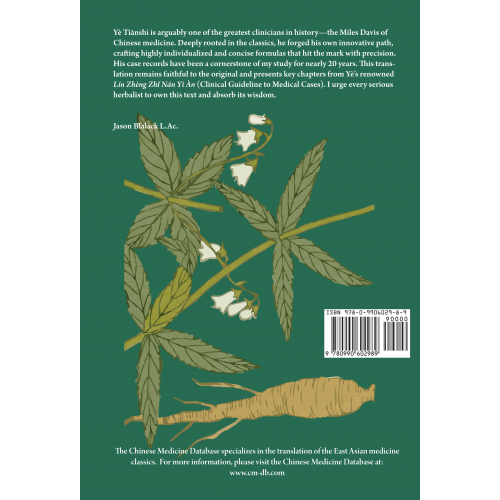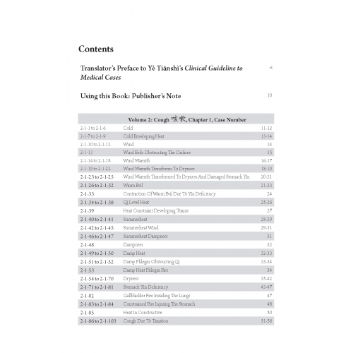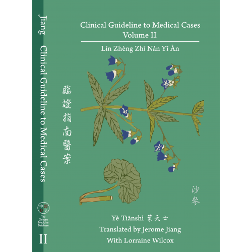 Ye Tianshi, during his life was known as a skilled physician and the doctor who was sought out by people with complex problems.To develop his understanding, Ye drew extensively from his understanding of the Shang Han Lun (Treatise on Cold Damage), extraordinary vessel theory, knowledge of the pulse, and a sophisticated understanding of medicinals.Ye is first and foremost known as a clinician, who also developed wen bing (warm disease) theory and four levels theory. The case records presented in the Clinical Guideline to Medical Cases were gathered, categorized, and published in ten volumes by Ye's students after he died. This text also contains commentary by famous scholar-physician Xu Dachun who was a contemporary of Ye Tianshi. Volume Two, of Clinical Guideline to Medical Cases as presented here contains chapters on Cough, Spitting of Blood, Loss of Voice, Throat Bì-impediment, and in total contains 357 cases. Clinical Guideline to Medical Cases has long been considered one of the essential texts to study for all East Asian Medicine clinicians.